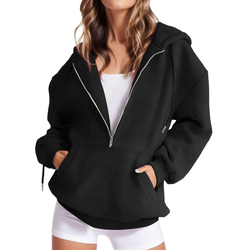 Solid Color Long Sleeve Pocket Hooded Zipper Thickened Pullover Sweatshirt for Women — buy online with free worldwide shipping!