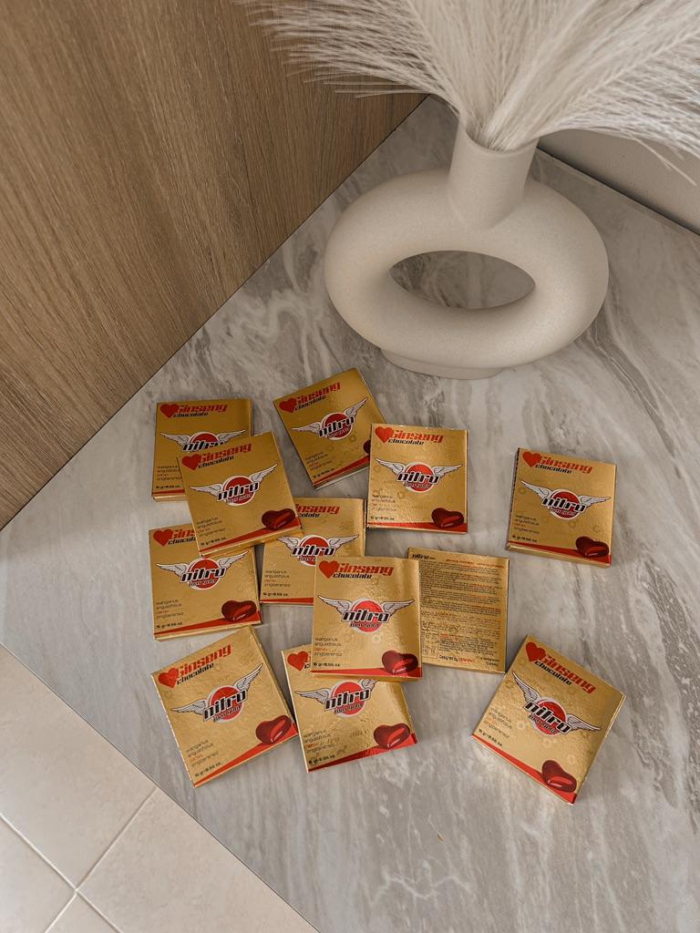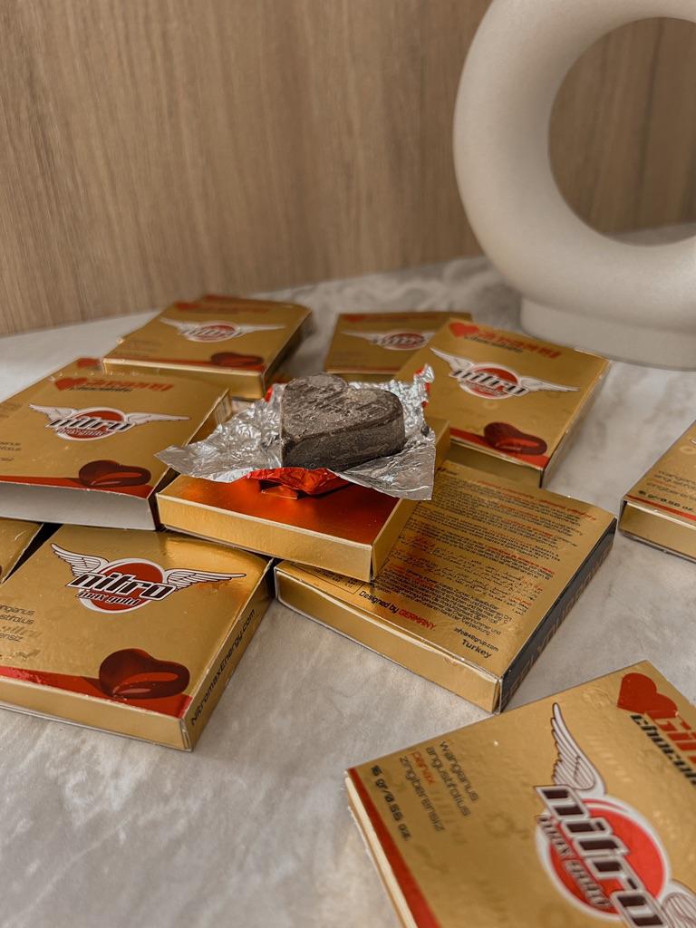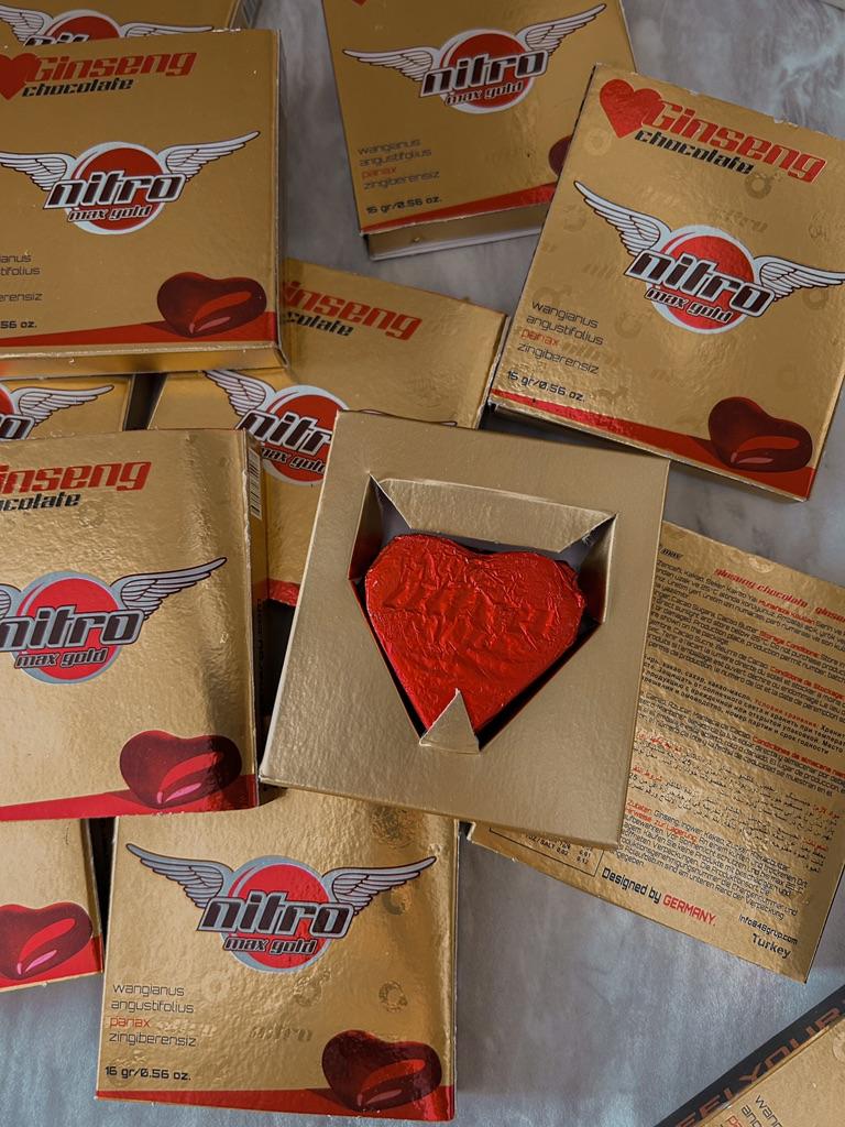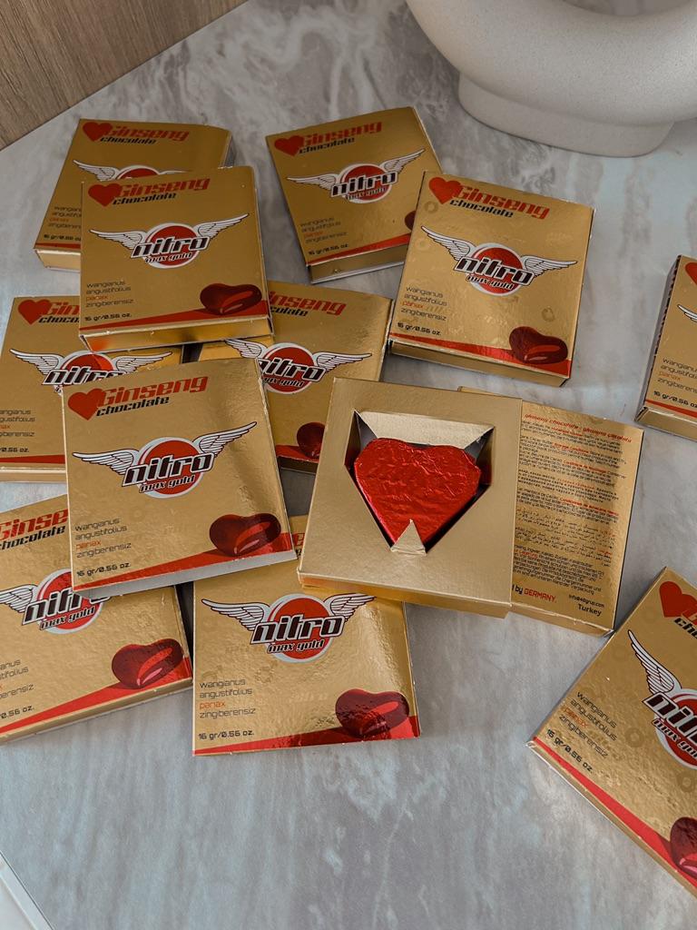 Turkish sweets 🍫 This chocolate aphrodisiac is a real taste for gourmets. The tile has the shape of a heart, the wrapping is paper, the design is pleasant. There are 12 pieces of 16 games in a box. Contains natural ingredients. Dark chocolate with the addition of ginseng, which is known for its tonic and stimulating properties, as well as a positive effect on immunity. Not everyone likes chocolate. Only those who like something unusual and a little specific will be able to enjoy the taste of chocolate.