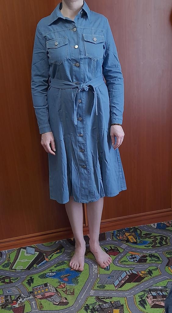Reality and picture are at odds. In the picture the dress is a little flared in reality. More like a work robe. Can be worn, a little disappointed.