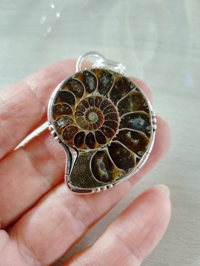 Ammonite Fossil Pendant Real Gemstone Pendant 925 Sterling Silver Pendant Ammonite Fossil Silver Jewelry Handmade Pendant Gift For Friend — buy online with free worldwide shipping!