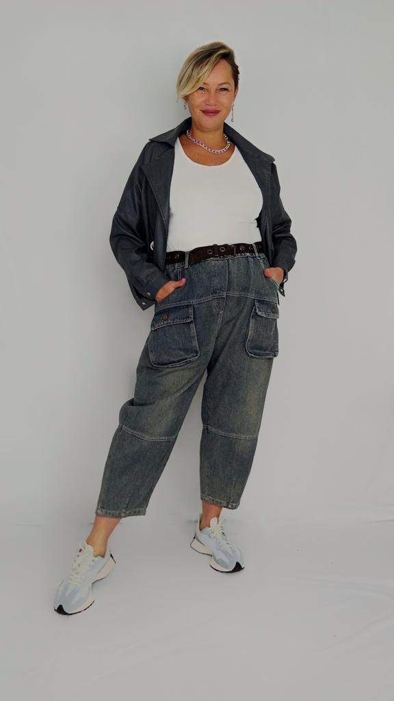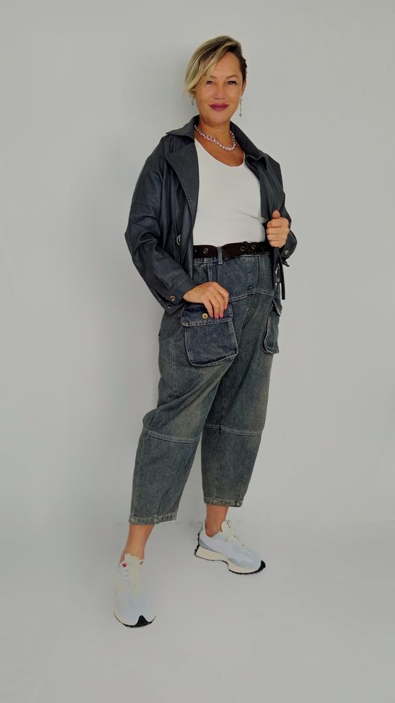 Plus Size Autumn Winter Casual Loose Harem Jeans Elastic Waist Washed Cotton Vintage Jeans Korean Fashion Stylish Denim Trousers With Belt