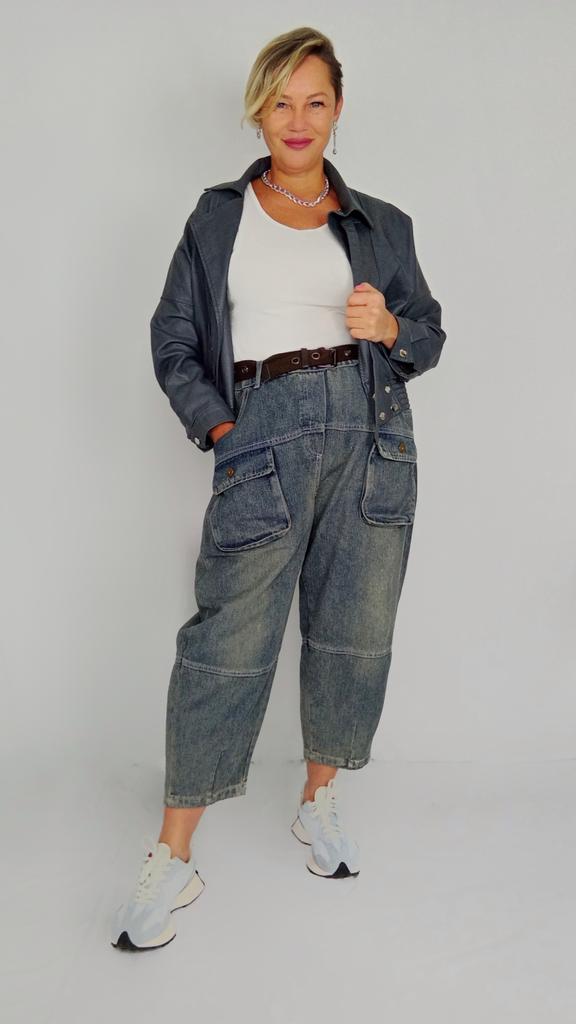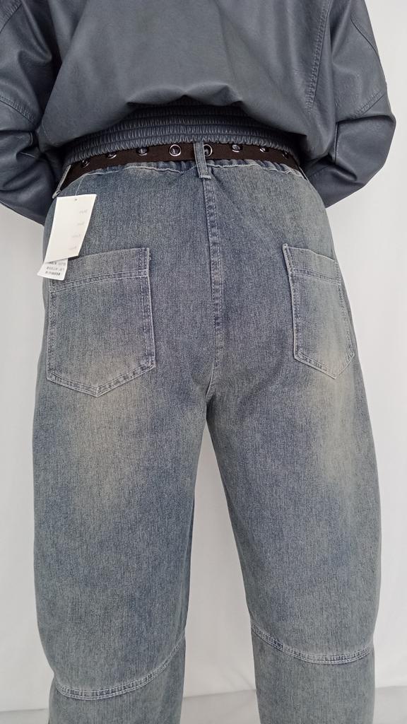 Plus Size Autumn Winter Casual Loose Harem Jeans Elastic Waist Washed Cotton Vintage Jeans Korean Fashion Stylish Denim Trousers With Belt — buy online with free worldwide shipping!