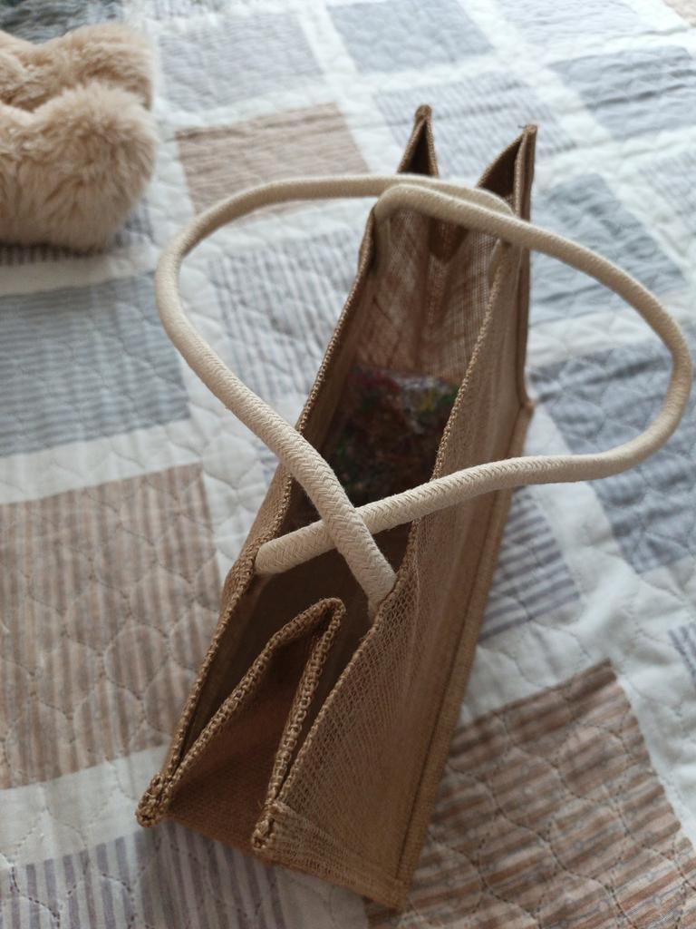 Eco Friendly Reusable Jute Bag Waterproof Interior Burlap Tote Bags Natural Linen Bags with Soft Cotton Handles and Laminated Interior — buy online with free worldwide shipping!