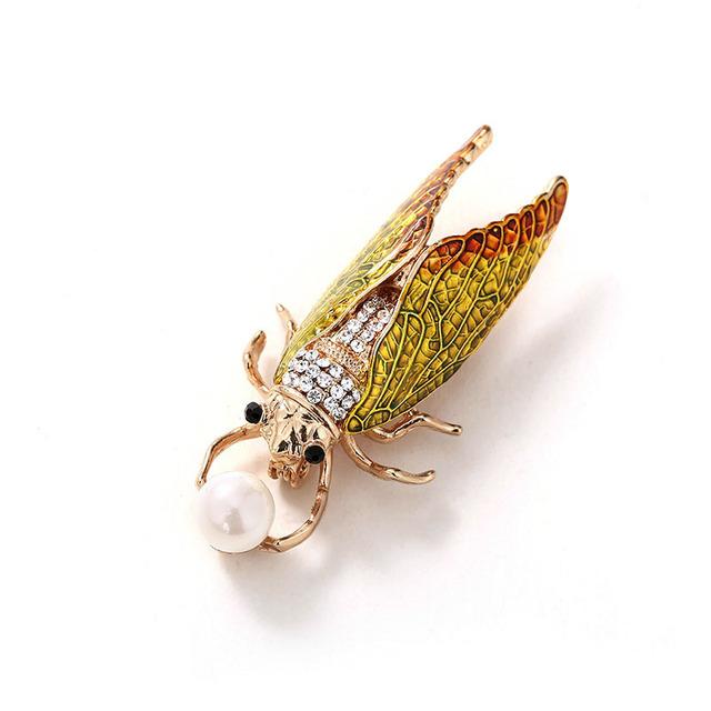 High Grade Pearl Enamel Cicada Brooches For Women Inlaid Rhinestone Simulation Design Animal Brooch Pins Jewelry — buy online with free worldwide shipping!