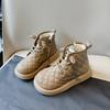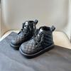 Kids Winter Thick Warm Martin Boots New Plaid PU Leather Snow Boots Boys and Girls Non-slip Plush Casual Shoes