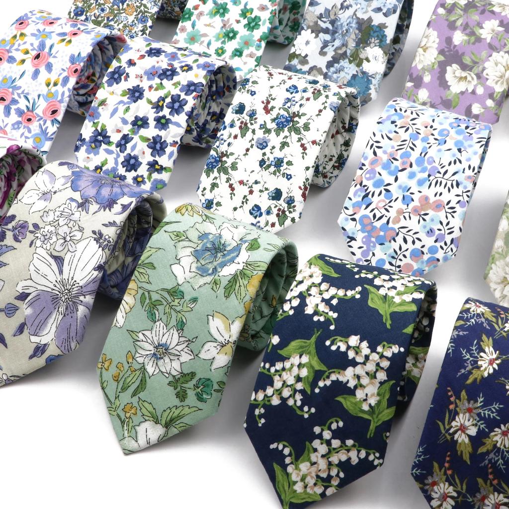 Floral Tie, For Men Women, 100% Cotton, Elegant Flower Necktie, White, Blue, Narrow Skinny, Wedding, Party — buy online with free worldwide shipping!