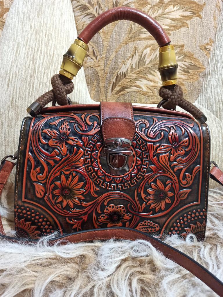 Johnature Vintage Luxury Handbag Handmade Leather Carved Women Bag Versatile Female Shoulder & Crossbody Bags — buy online with free worldwide shipping!