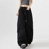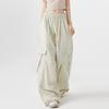 Women Big Pockets Cargo Pants Y2k High Elastic Waist Drawstring Baggy Trousers Vintage Casual Loose Wide Leg Straight Pants