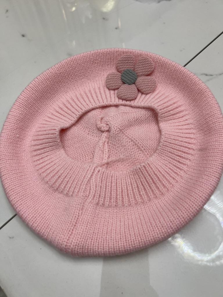 Flower Baby Beret Hat Winter Warm Knitted Beanie Cap for Infant Girls Korean Toddler Princess Artist Solid Color Painter Caps