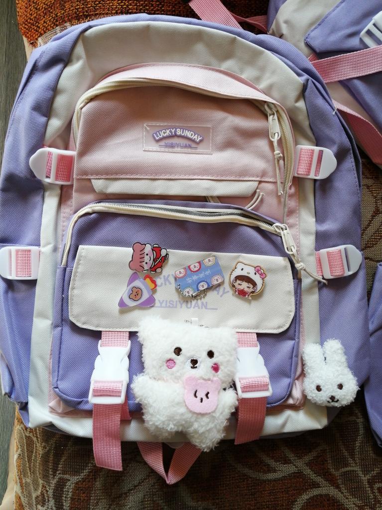 Middle School Boys and Girls School Bags Fashion Canvas Color Blocked Primary Student Backpack 5 Pcs Set Satchel with Tutoring Bag