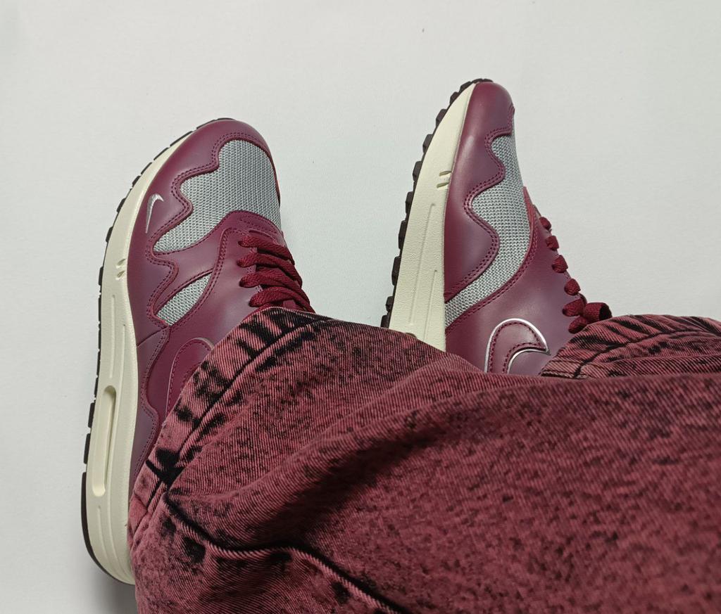 Patta X Nike Air Max 1 Rush Maroon Unisex Sneakers Red Metallic-Silver DO9549-001