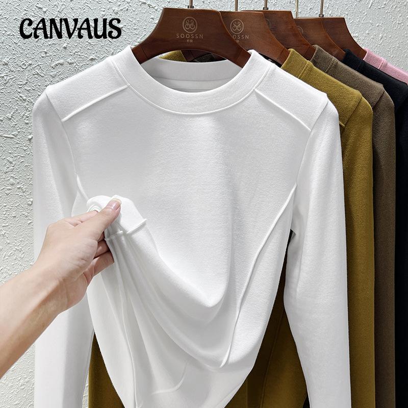Autumn and Winter Women's Bottoming Shirt Brushed Fleece Long Sleeve Blouse Inner Bottoming Shirt Design Tops