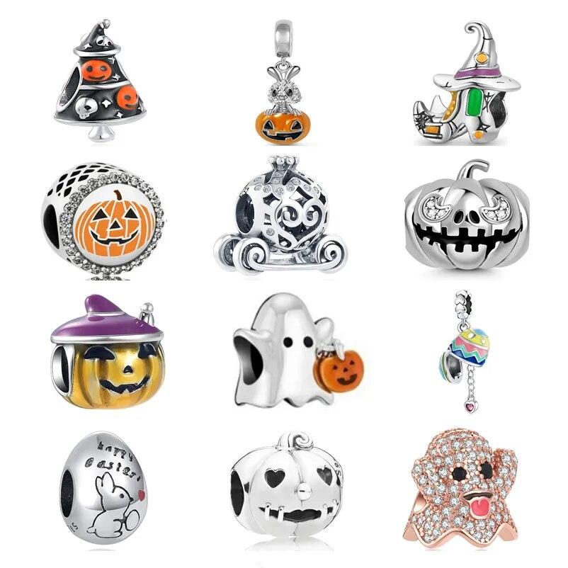 New 925 Silver Halloween Pumpkin Head Charm Pumpkin Car Bead Pendant Necklace Amulet Women Jewelry