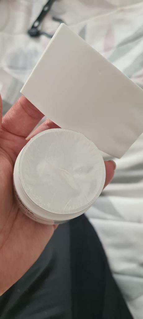 The box was a little crumpled when it arrived. But the jar itself is intact. The texture and smell are similar to paint to me personally. The glue is thick, you need to immediately wash your hands and the bone with which you apply this mask. I will not write anything about its effect, I will try it later.
