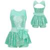 Kids Sleeveless Sequined Dancewear Gymnastics Leotard Girls Ballet Figure Skating Dress Modern Rave Jazz Dance Costume