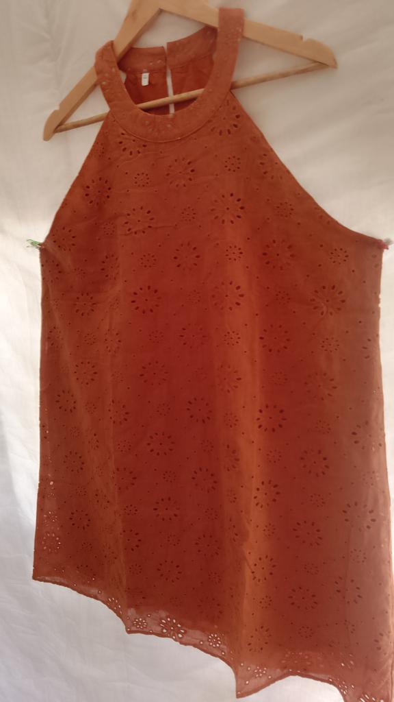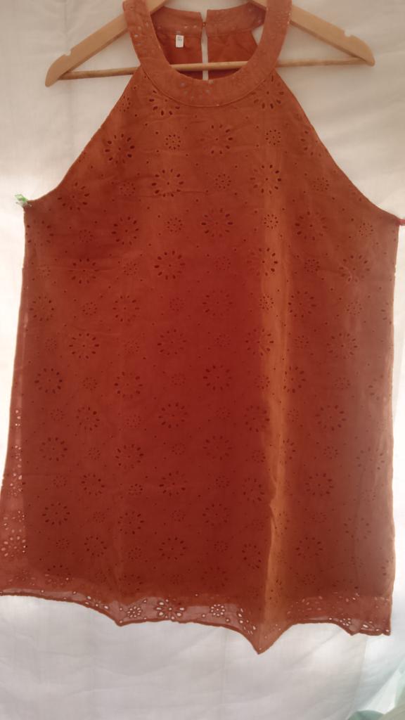 The dress is very pretty but the color they sent is not orange like the one in the sales photo, it's like a light brown or rust as they call a color lately. Also, the armhole of the dress is so open that without a bra, the whole chest would be visible through it. For these two things, I give it four stars, thank you.