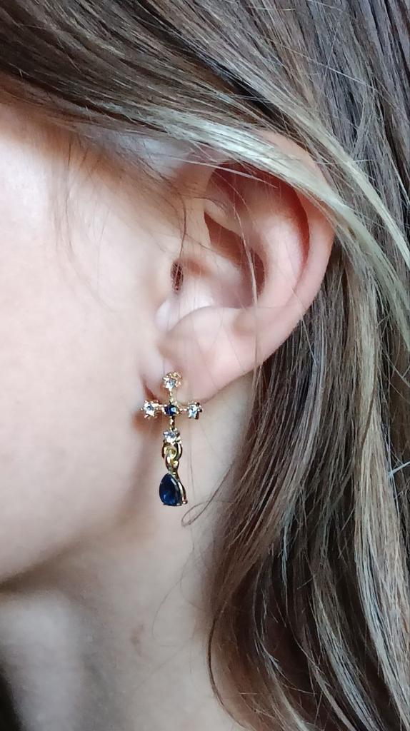 Women Faux Sapphire Rhinestone Alloy Cross Ear Stud Earrings Jewelry Gift — buy online with free worldwide shipping!