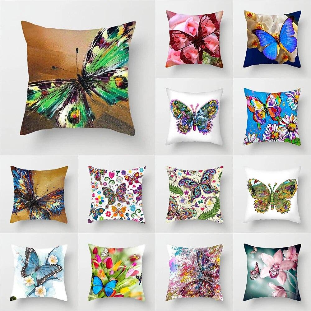 Colored Butterfly Animal Flower Cushion Cover for Home Living Room Sofa Chair Pillow Decoration Throw Pillow Cover — buy online with free worldwide shipping!