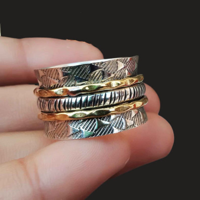 Narrow Spinner Ring, 925 Sterling Silver ring, Hammered Ring, Two Tone Spinning Ring, Designer Ring, Handmade Jewelry, Valentine's Day Gift. — buy online with free worldwide shipping!