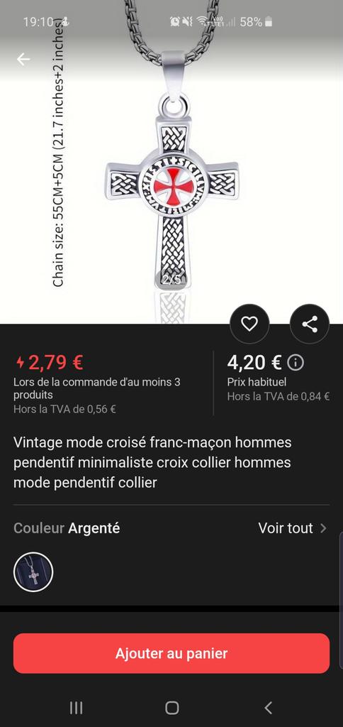Vintage Fashion Crusader Freemason Men's Pendant Minimalist Cross Necklace Men's Fashion Pendant Necklace — buy online with free worldwide shipping!