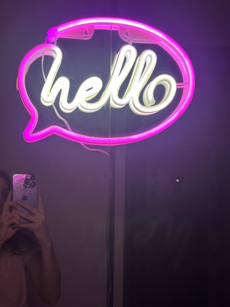 Introducing our decorative neon lights - the perfect addition to brighten up any space! Made with high-quality materials and fine workmanship, these neon lights are built to last. The soft and warm light emitted creates a cozy ambiance, making it ideal for bedrooms, living rooms, or any dark spaces that need a touch of charm. Featuring a unique HELLO appearance neon sign, this neon light is not only functional, but also adds a stylish and trendy element to your decor. It's the perfect gift for family, lovers, girlfriends, girls, and kids on birthdays or Valentine's Day. But that's not all! Our LED neon sign can be used as a decoration for any room and holiday party. Whether you're hosting a birthday celebration or setting the mood for a romantic dinner, this decorative light will add a charming touch to your place setting. With its long service life and durable construction, you can enjoy the beauty of this night light for years to come. Brighten up your space and add some color with our decorative lights. Order now and transform any room into a vibrant and inviting space!