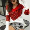 Autumn and Winter Women's Sweater Leopard Print Knit Sweater V-Neck Patchwork Women's Sweater
