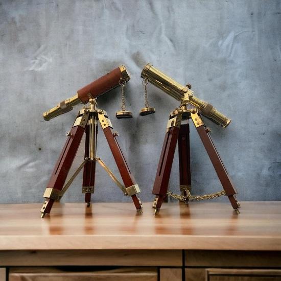 The telescopes feature a solid brass construction that not only ensures durability but also exudes a timeless elegance reminiscent of classic nautical instruments. The polished brass finish adds a touch of sophistication, making these telescopes not just practical tools but also striking decor pieces.