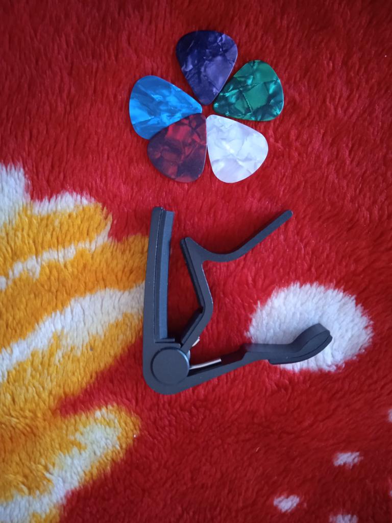 Introducing our premium guitar capo, designed to provide double protection and enhance your musical experience. Made from safe and environmentally friendly material, this capo ensures optimal neck protection while playing your favorite instrument. The innovative buffering physical structure of the silicone further minimizes the risk of injury. Our ergonomic capo ensures a snug fit on your guitar's neck, eliminating any buzzing or unwanted noise. Effortlessly change positions while maintaining perfect pitch and intonation. Durability is key when it comes to capos, and we have taken that into consideration. Our capo features an anti-aging, power steel spring that guarantees a longer service life. The special steel used in the spring basket enhances stability and durability, making this capo a reliable companion for years to come. Crafted from alloy material with exceptional oxidation resistance and high hardness, our capo offers unimaginable durability. It can withstand the rigors of regular use without compromising its strength or wear resistance. Whether you play guitar, ukulele, bass, or any other musical instrument, this capo is suitable for a wide range of applications.