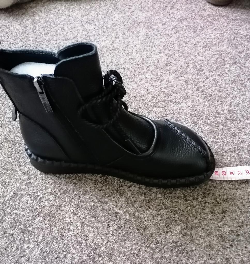 Johnature Flat Bottom Plush Warm Cotton Boots Solid Color Retro Genuine Leather Women's Short Boots — buy online with free worldwide shipping!