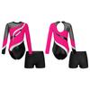 Kids Girls Gymnastics Leotard Glitter Bodysuit Long Sleeve Shiny Rhinestones Decorated Jersey with Shorts Dance Costume