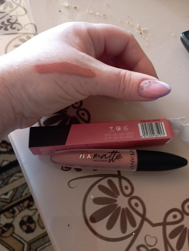 Long-lasting, liquid, matte lipstick, a very nice shade (02) with a chocolate smell. Washes off only with micellar water. I recommend it before shopping👍