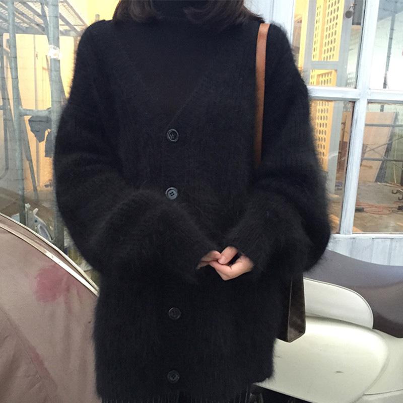 Autumn Women's Fashion Lantern Sleeve Imitation Mink Velvet Loose Sweater Casual Knitted Cardigan Jacket — buy online with free worldwide shipping!