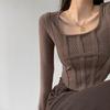 Y2k T-shirt Girls Crop Tops Spring Women Long Sleeve O Neck Cotton Shirts Bustier Harajuku Pullover Streetwear All-match T-shirt