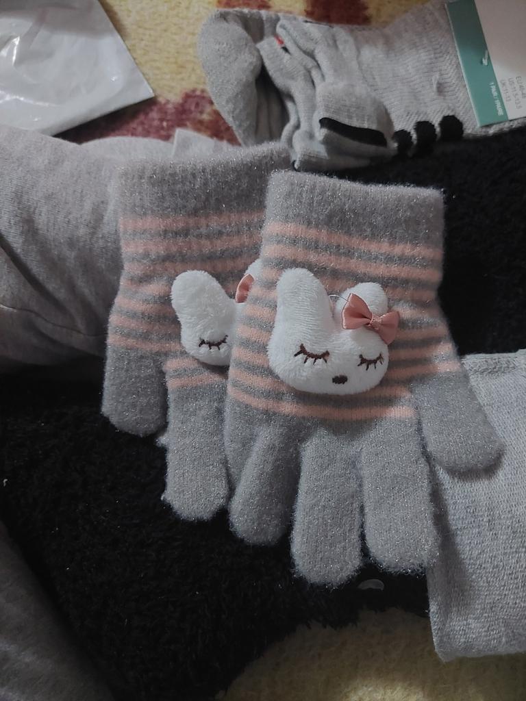 1Pairs Cute Cartoon Rabbit Bear Winter Warm Kids Gloves Kindergarten Boys Girls Five Finger Knitted Gloves for 3 To 6 Years