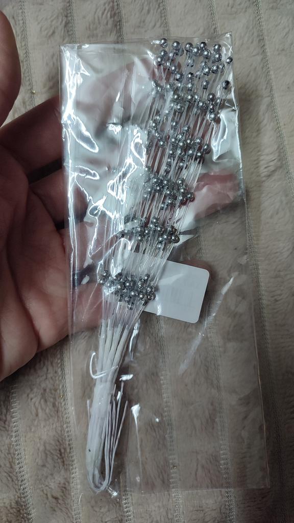 Very delicate, thin. 1 branch of 3 strands, the pearls are small, 3mm each, the length of the branch is approximately 10cm and another 10cm of wire base.