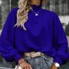 Fashion Ruffles Long Sleeve High Collar Solid Color Women Office Casual Pullover Shirt Blouse Top