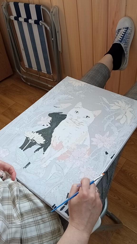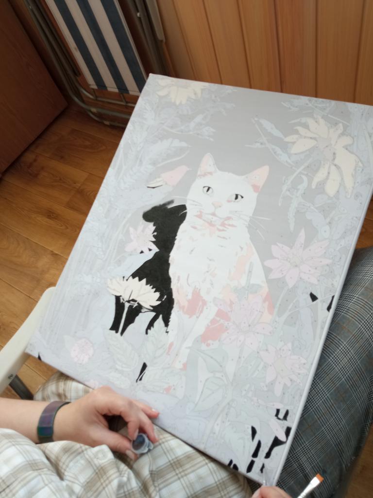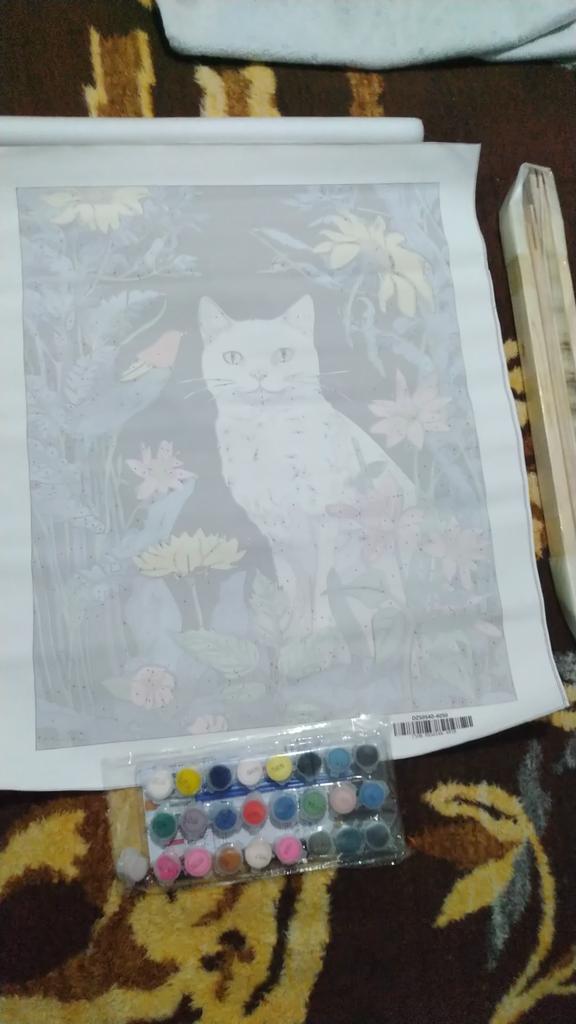 Ruopoty Decorative Painting By Numbers Unique Gift Cat With Flowers Artwork For Adults Picture Drawing On Canvas Kill Time — buy online with free worldwide shipping!