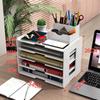 File Storage Box Multi-Layer Bookshelf Office Supplies File Box with Pen Holder Book Stand Shelf A4 Desktop File Shelf