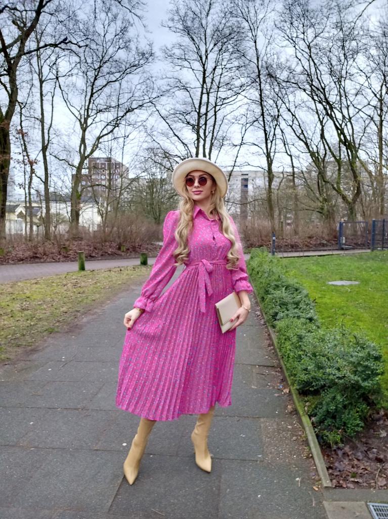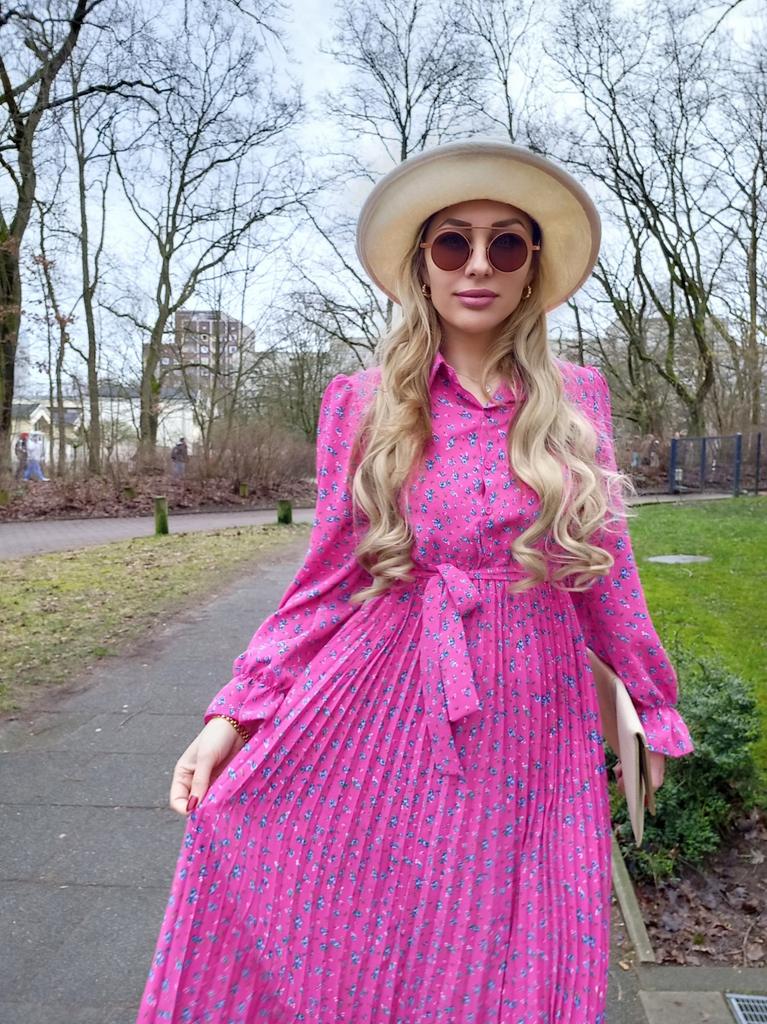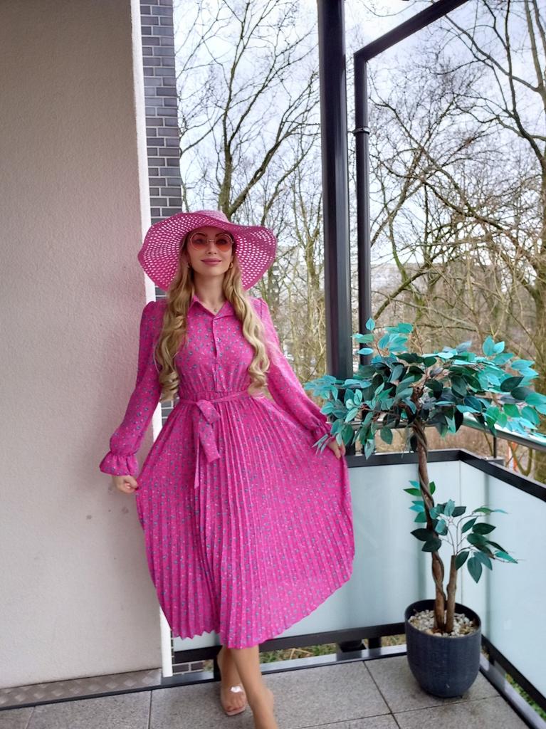 Elegant maxi dress, pleated dress👗👍! Delivery time 🌞: 24 days to Germany. ♻️Scope of delivery: Included in delivery is a beautiful pleated dress 👗 in the appropriate size and color. The product is available in 3 colors to choose from. It is available in sizes from S to XL. I ordered the product in size S in rose red and the dress 👗 fits me great and the color is exactly as shown. 🤗🤗🤗👍 I normally wear dress size 36 (S). I weigh 55kg and am 167cm tall. The dress is true to size. 🌞Quality ♻️: The dress is light and swings beautifully. Very pleasant on the skin. The dress has a small V-neckline and buttons, as well as a matching belt with elastic at the waist. You can use the dress 👗 for a party or daily use. Perfect for spring and summer!!👌👌👌👌I especially like this great floral print. It looks so beautiful!!👍👍👍👍I like pleated dresses!💯💯💯💯 This dress 👗 arrived in great condition💯💯, I even didn't iron it. ✅️Material composition: 100% polyester. But the material is very comfortable on the skin. I think the DRESS 👗 is simply mega🔝🔝🔝🔝🔝 ✳️Summary ✳️: A beautiful casual long-sleeved pleated dress with the belt 👗 that you can order in your normal size. I am very happy to recommend the product.,5 stars. 🌟! Thanks Joom and the seller Hi Dawn!🤗🤗🤗👗👍And thanks for a little gift 🎁!❣️💋