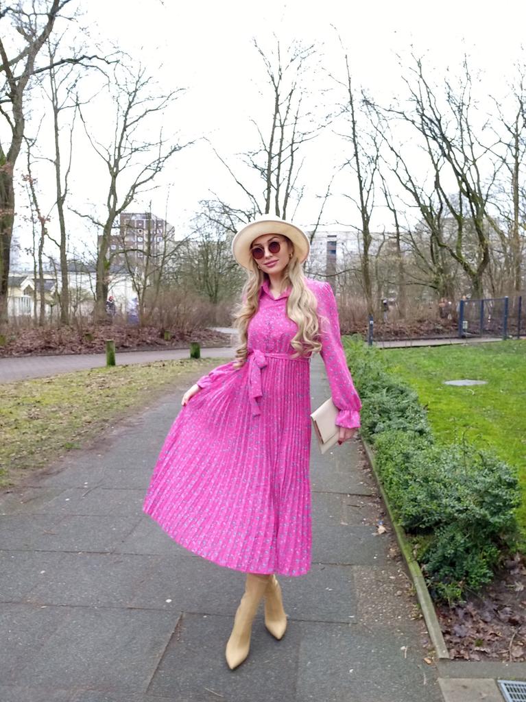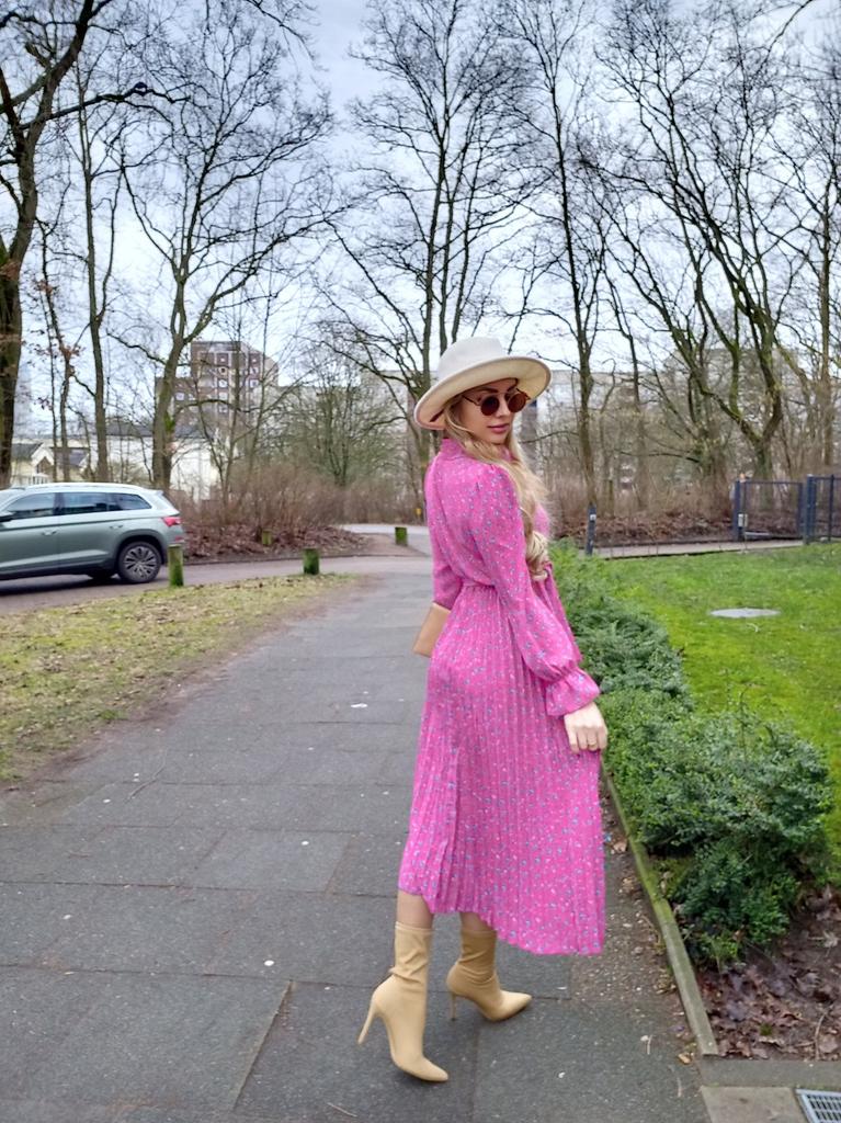 * pretty pleated dress with flowers * 💥𝗟𝗶𝗲𝗳𝗲𝗿𝘇𝗲𝗶𝘁 17 days to Germany 💥𝗟𝗶𝗲𝗳𝗲𝗿𝘂𝗺𝗳𝗮𝗻𝗴 The scope of delivery includes 1 dress in the corresponding color and size. The dress is available in 3 different colors (pink, green and black) in sizes S to XL. I ordered the dress in size S in black. I wear size 36 to 38. I weigh 62 kg over 172 cm. Cup size 75D. The dress fits me well because it is also very stretchy at the waist. 💥𝗤𝘂𝗮𝗹𝗶𝘁ä𝘁 The dress is opaque. The dress is only stretchy at the waist, not at the chest. The dress has a nice fit and falls to my knees... the lower part is pleated and wrinkled. I particularly like the floral pattern. For material composition : 100% Polyester 💥𝗙𝗮𝘇𝗶𝘁 Elegant pleated dress with a floral pattern that has a very nice fit... that fits the figure perfectly. You can order the dress in its original size. It fits true to size.
