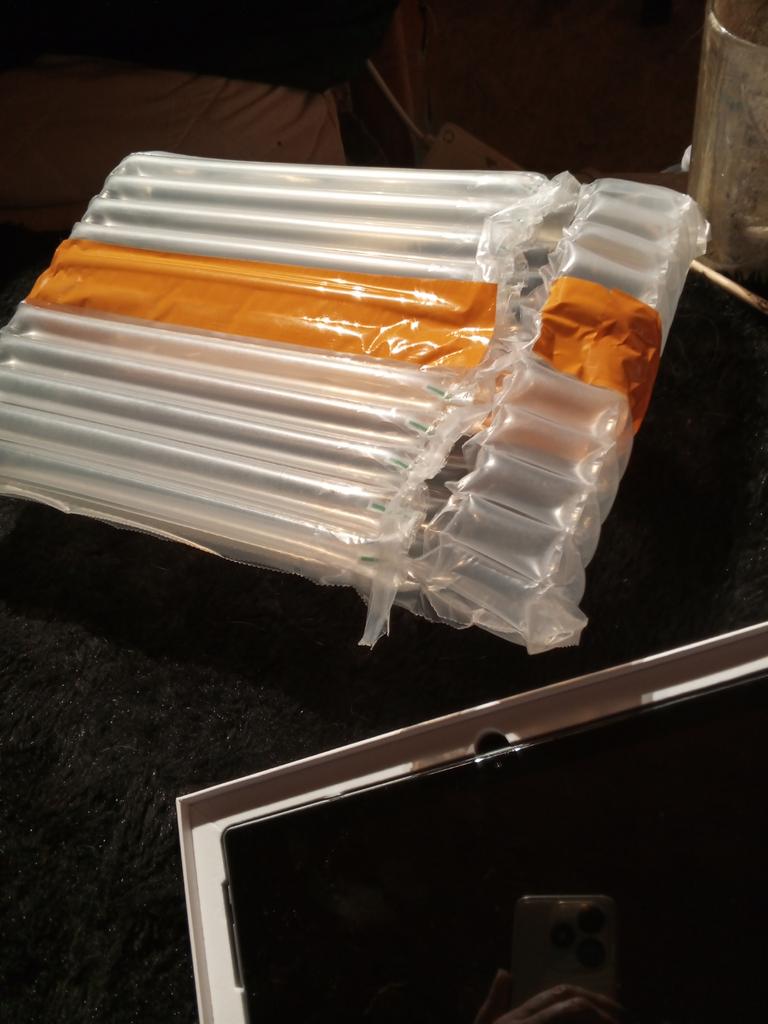 Packed very securely. Everything works The set includes a cover, a book, a charging unit, a t-C cord, a tC adapter, a key, a film and the tablet itself. He came whole and tired