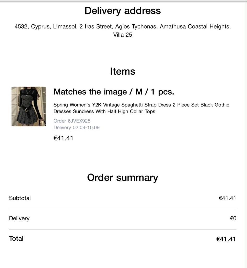 Subject: Incorrect Items Received – Order Assistance Requested Dear Joom Online Shopping Team, I hope you are doing well. I recently placed an order for the Strap Dress 2-Piece Set Black Gothic Dress Sundress with Half High Collar Top, but I received only the strap dress without the long-sleeve top. Additionally, the other item I ordered was supposed to include a ribbon 🎀 (as shown in the product picture), but it arrived without it. Could you please review my order and advise me on how this issue can be resolved? Thank you very much for your help. Kind regards, GINA TEOFILO VELASQUEZ