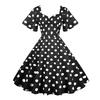 Women Evening Dress Retro Color Matching Dot Print A-line V Neck Big Swing Short Ruffle Sleeves Tight High Waist Back Zipper Party Prom Midi Dress