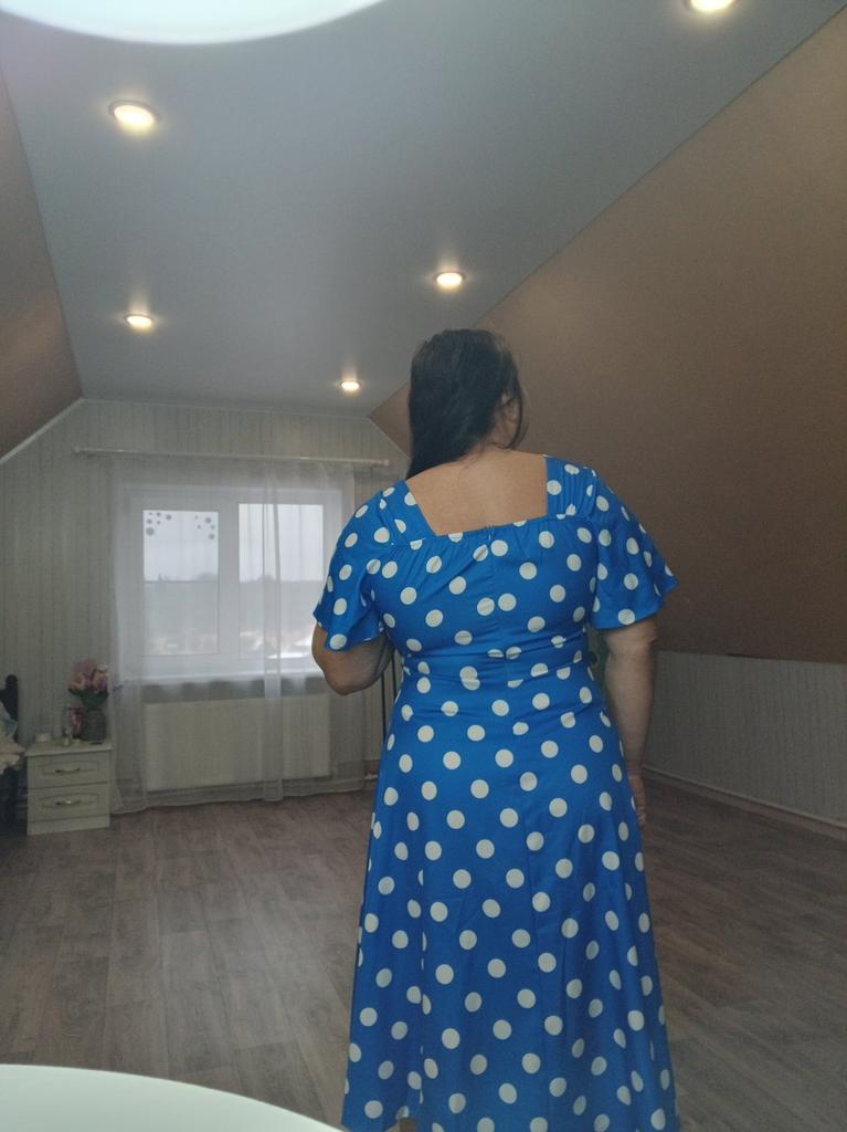 Women Evening Dress Retro Color Matching Dot Print A-line V Neck Big Swing Short Ruffle Sleeves Tight High Waist Back Zipper Party Prom Midi Dress — buy online with free worldwide shipping!