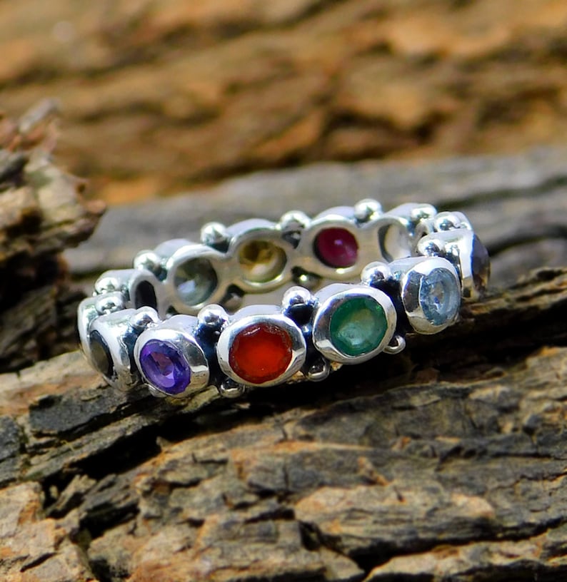 Solid 925 Sterling Silver Multi Gemstone Eternity Band Ring, Handmade Jewelry, Unisex Gift, Statement Jewelry, Wedding Ring — buy online with free worldwide shipping!