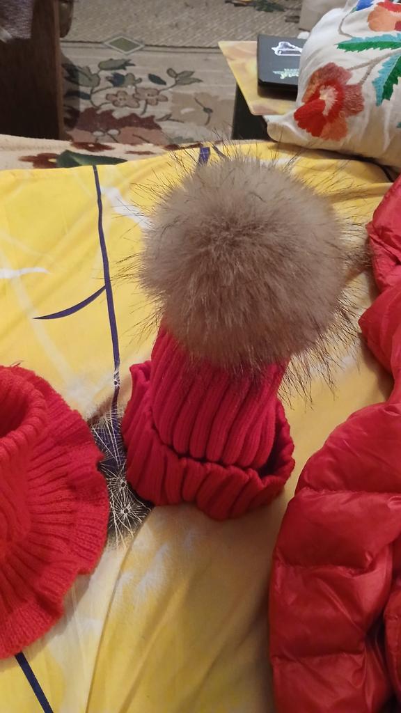 2023Hot Women Winter Racoon Fur Pom Pom 15cm Ball Knit Beanie Ski Cap Bobble Hat