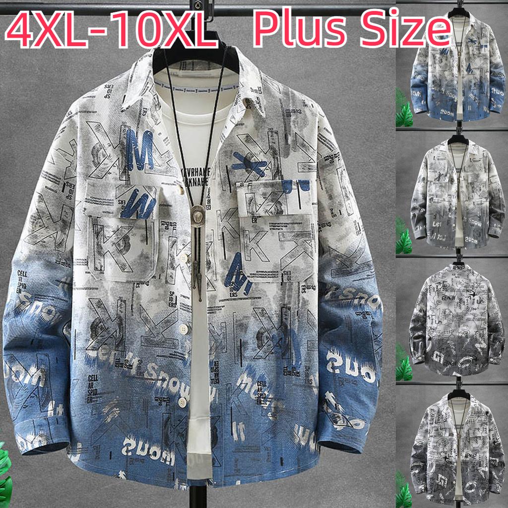 Spring and Autumn Plus Size Long Sleeve Shirt Men Fatty Shirt Workwear Jacket Casual Clothes 4XL-10XL