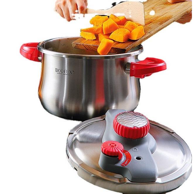 The pot body is made of high quality 304 stainless steel with a thickness of 1cm,this gives it durability and long-term performance. The bottom part of the pot is made of three layers of composite material with a thickness of up to 1.2cm, which allows it to be used on any cooker.