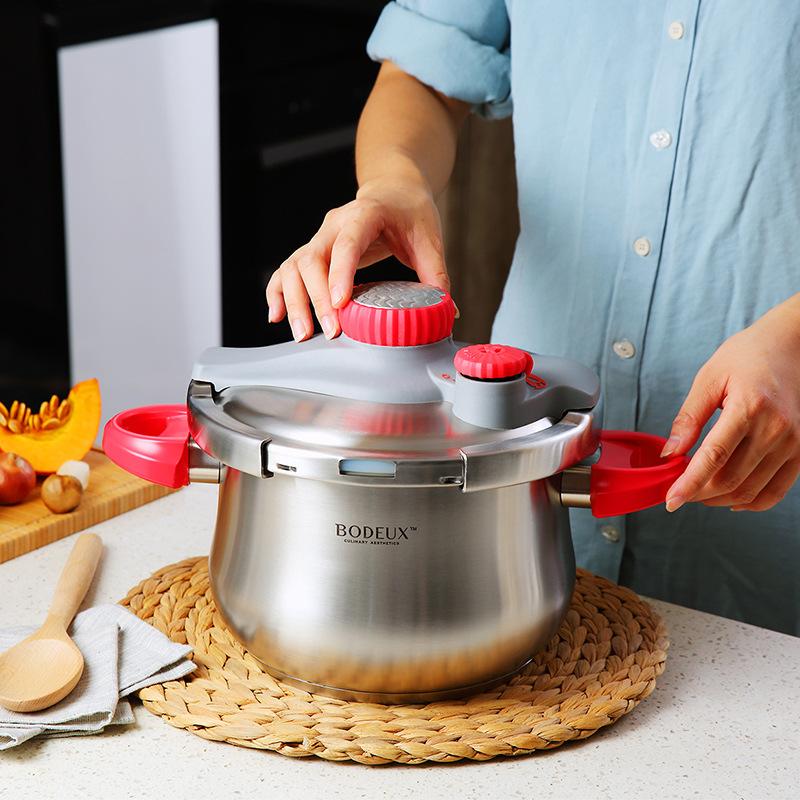 Equipped with the highest standard of safety system, after thousands of cooking tests, when the lid is closed, the automatic locking handle holds the lid firmly in place.
