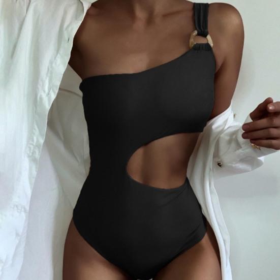 Stylish Women Swimsuit Padded Off Shoulders Bodysuit Pure Color Openwork Bikini Beachwear — buy online with free worldwide shipping!